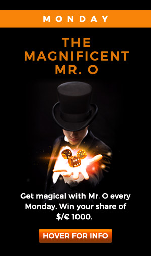 Spend some time on the reels on Sunday and Mr. O could boost your bankroll with a slot bonus to enjoy! Simply spin on your favourite slot games and if spotted, you could win up to $/€100 in Free Play!